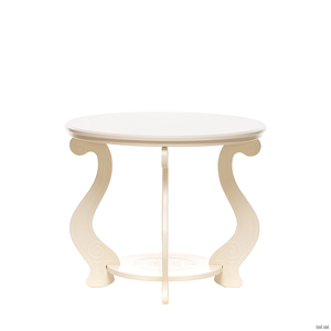 - Круглый изящный столик с удобной полочкой. Форма ножек стола придает ему воздушность. Высококачественный МДФ и отделочный шпон различных цветов делают столик надежным и очень долговечным.