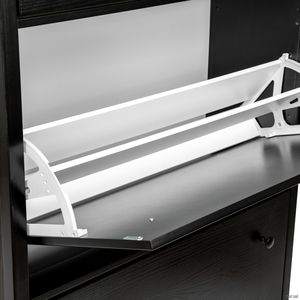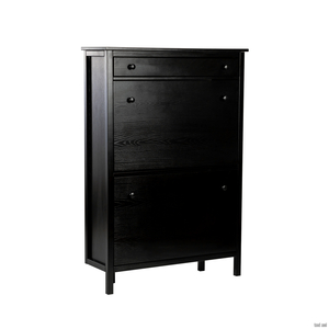 - Для хранения обуви и других аксессуаров в условиях ограниченного пространства идеально подойдёт галошница-тумба для обуви Leset «Токе». Благодаря продуманной эргономике, обувница при минимальной глубине в 30 см вмещает более четырёх пар обуви на ящик. Этот предмет интерьера станет незаменимым в гардеробной, бане или на даче. Его можно использовать как тумбу для обуви или комод. Этажерка для обуви выполнена в сдержанном скандинавском стиле. Акцент сделан на ненавязчивом декоре из круглых металлических ручек, который поддерживает стилистику модели. Тумба доступна в двух универсальных цветах — белом и чёрном, что позволяет легко вписать её в любой интерьер. При изготовлении тумбы для обуви Leset «Токе» использовался экологически чистый, практичный и долговечный материал — МДФ с красивой текстурой дерева. Для устойчивости и надёжности конструкции предусмотрены высокие ножки (11 см) в два ряда, которые также облегчают уборку пылесосом.