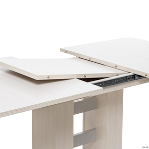 - Для ежедневного приёма пищи достаточно небольшого стола. А раздвижной стол — лучшее решение на случай гостей. В разложенном состоянии за ним может с комфортом разместиться до 6 человек. «Гранд» — самая универсальная модель в серии. Этот стол не только впишется в любой интерьер, но и заставит его выглядеть дороже, благодаря качественной имитации массива. В разложенном виде, длина стола - 1600 мм.