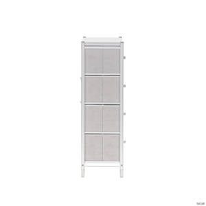 - Узкий комод в спальню «Хайди 4» – односекционный комод с 4 выдвижными ящиками. Он станет идеальной системой хранения для белья и вещей. Компактный комод с ножками представляет собой легкую и прочную конструкцию из: • металлического каркаса; • верхней панели из ЛМДФ. Наличие водостойкой верхней панели позволит использовать элемент мебели даже как пеленальный комод; • ящиков из экокожи и спанбонда; • пластиковых ножек, которые не повредят пол. Преимущества: • универсальность – комод уместен в интерьерах разных стилей и помещениях любого назначения: гостиной, детской, спальне, прихожей, лоджии, офисе; • безопасность, обусловленная скошенными углами, нетравматичными элементами; • быстрота сборки; • простой уход (за комодом легко ухаживать с помощью влажной ткани); • прочность. Рекомендуем прикручивать комод к стене с помощью шурупов (в комплекте), согласно инструкции. Это исключит возможность опрокидывания комода.