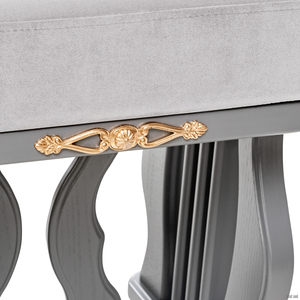 • Банкетка с мягким сидением и изогнутыми опорами необычной формы выполнена из массива дерева. Сиденье обтянуто мебельной тканью высокого качества. Надежные опоры банкетки придают ей устойчивость. Банкетка станет отличным дополнением к туалетному столику «Джульетта».