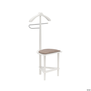 • Плечики изделия и ножки изготовлены из массива бука, основание сиденье – МДФ, мягкий элемент: ткань микровелюр Candy mocco. Изделие покрыто высококачественным итальянским шелковисто-матовым лаком. Данная модель может использоваться не только, как вешалка, но и как стул, который способен выдержать нагрузку до 120кг. Металлическая трубка придает вешалке изящности, прекрасно гармонирует с общим видом изделия. На трубку возможно повесить брюки, юбки, ремни. Подойдет для использования как в стильной комнате, так и в прихожей.