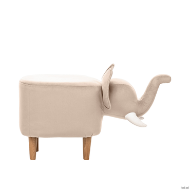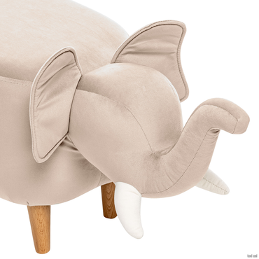 - Маленькая, мягкая копия доброго великана из Индии. Это удобный пуф и интересная игрушка для ребёнка. А ещё у слона плоская спина, и он вполне может быть даже обычным табуретом.