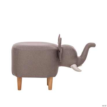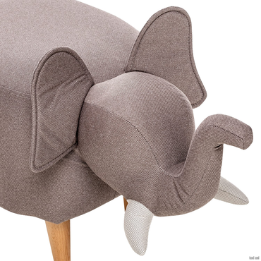 - Маленькая, мягкая копия доброго великана из Индии. Это удобный пуф и интересная игрушка для ребёнка. А ещё у слона плоская спина, и он вполне может быть даже обычным табуретом.