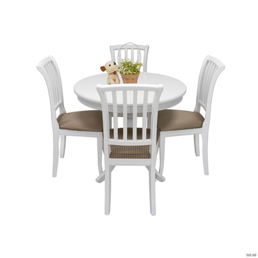 - Набор для кухни исполнен в классическом стиле. Устойчивая центральная ножка стола делает силуэт изделия особенно изящным. Столешница выполнена из материала МДФ и покрытая эмалью и матовым лаком. Центральная вставка - бабочка хранится внутри стола. Стулья с классическими линиями, мягким сиденьем и прочной, удобной спинкой. Каркас из массива бука — прочный и экологичный материал.