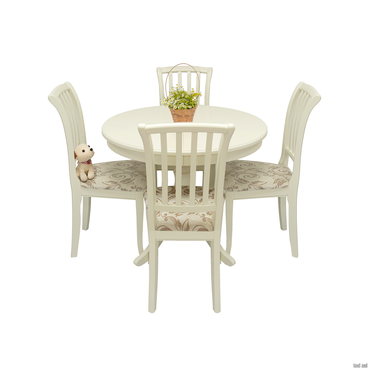 - Набор для кухни исполнен в классическом стиле. Устойчивая центральная ножка стола делает силуэт изделия особенно изящным. Столешница выполнена из материала МДФ и покрытая эмалью и матовым лаком. Центральная вставка - бабочка хранится внутри стола. Стулья с классическими линиями, мягким сиденьем и прочной, удобной спинкой. Каркас из массива бука — прочный и экологичный материал.