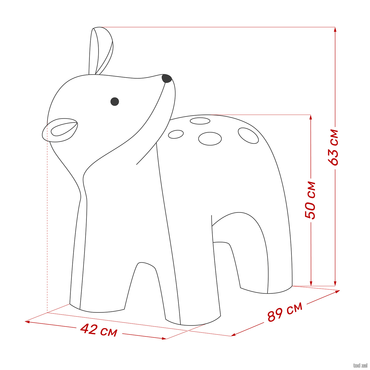 - Пуфик Bambi сделает эксклюзивным любой интерьер и легко решит сложный вопрос подарка. Любимец из детской сказки Бемби разнообразит игровую зону ресторана, украсит гостиную и коридор, дополнит примерочную магазина для детей, послужит декоративной банкеткой в прихожей. Особенности пуфика: • Пуф удобен для малышей и взрослых, подходит для больших и компактных помещений. • Каркас из прочной березовой фанеры высшего сорта. • Чехол на пуфике двухцветный: коричневый и бежевый. • Мы используем практичные и приятные на ощупь ткани, которые легко очистить от пятен и шерсти питомцев, а также гипоаллергенные наполнители. • Пуфик хорошо набит и держит форму. Пуф-животное подходит не только для девочек и мальчиков! Взрослые весом до 100 кг тоже могут посидеть на мягком стульчике и погрузиться в воспоминания из детства. Олененок отлично смотрится в комплекте с креслами, диваном и любым декором. А как приятно наблюдать за эмоциями малыша, получившего пуфик-диванчик и игрушку в одном изделии!
