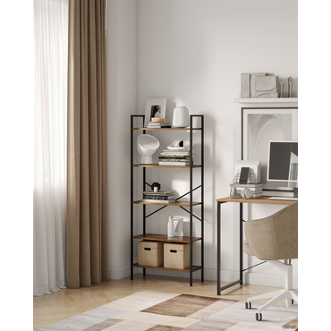 - Компактный стеллаж на 5 полок Leset Стилвуд — практичный и стильный элемент для дома и офиса. Каркас из металлического профиля 1,5 см, толщина 0,1 см с порошковым покрытием обеспечивает жёсткость и долговечность; крестовина жесткости и крепление к стене добавляют стабильности и безопасности. Полки из ЛДСП толщиной 1,6 см легко чистятся, устойчивы к царапинам и выдерживают до 20 кг каждая. Нижняя полка имеет возможность крепления на разных высотах — удобно для высоких вещей или создания композиции. Маленькая плоская упаковка делает стеллаж лёгким в переноске и сборке. Универсальный дизайн впишется в любой интерьер: 4 декора (чёрный, дуб крафт, орех, белый) и 2 цвета каркаса (белый, чёрный).