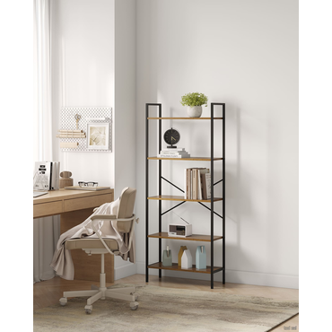 - Компактный стеллаж на 5 полок Leset Стилвуд — практичный и стильный элемент для дома и офиса. Каркас из металлического профиля 1,5 см, толщина 0,1 см с порошковым покрытием обеспечивает жёсткость и долговечность; крестовина жесткости и крепление к стене добавляют стабильности и безопасности. Полки из ЛДСП толщиной 1,6 см легко чистятся, устойчивы к царапинам и выдерживают до 20 кг каждая. Нижняя полка имеет возможность крепления на разных высотах — удобно для высоких вещей или создания композиции. Маленькая плоская упаковка делает стеллаж лёгким в переноске и сборке. Универсальный дизайн впишется в любой интерьер: 4 декора (чёрный, дуб крафт, орех, белый) и 2 цвета каркаса (белый, чёрный).