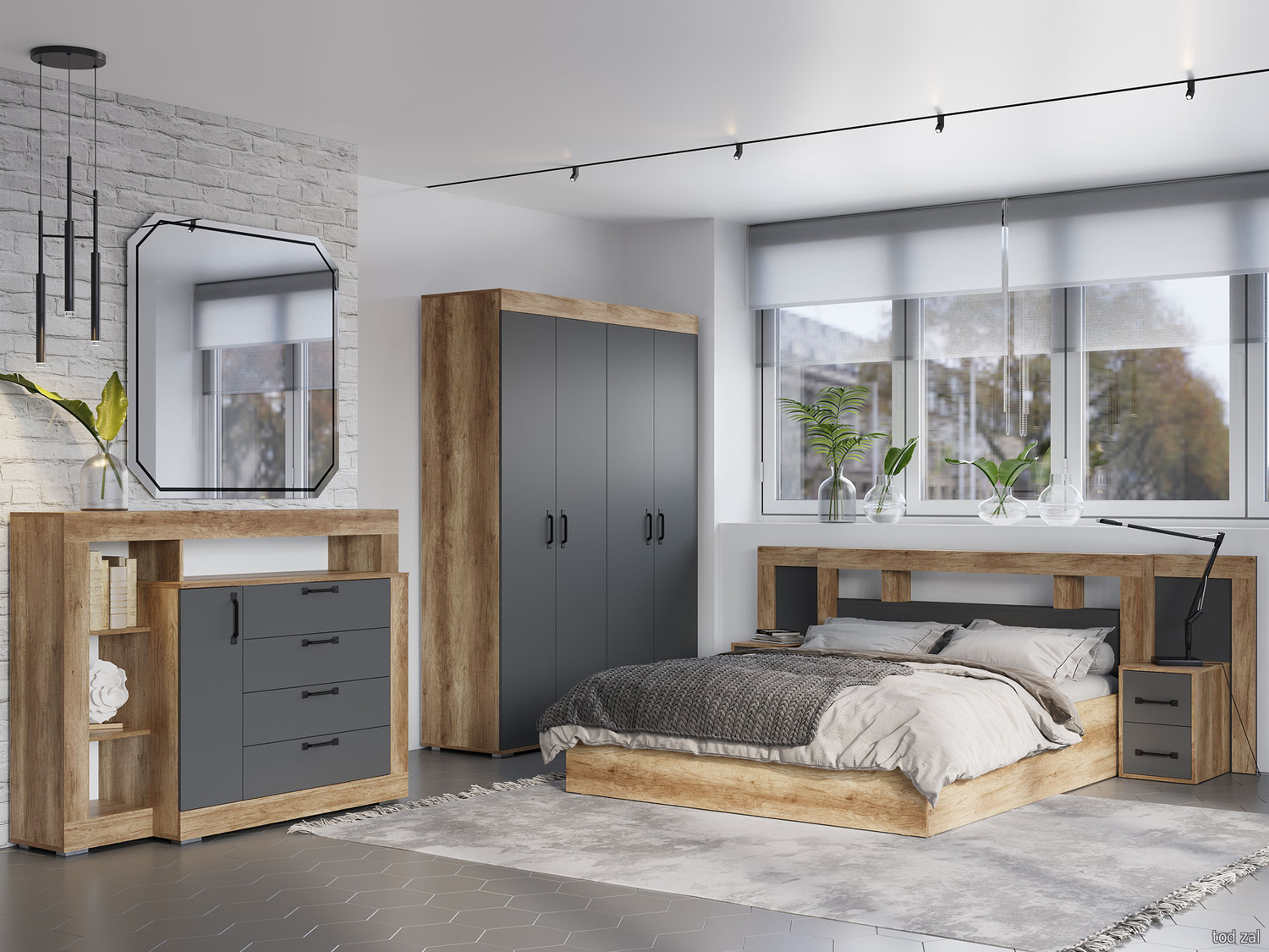 Спальный гарнитур Прима создаст спокойную и гармоничную обстановку, где будет приятно отдыхать от повседневных забот. В дизайне используются матовые поверхности и простые формы. Мебель смотрится очень уютно и основательно, при этом позволяет удобно раз...