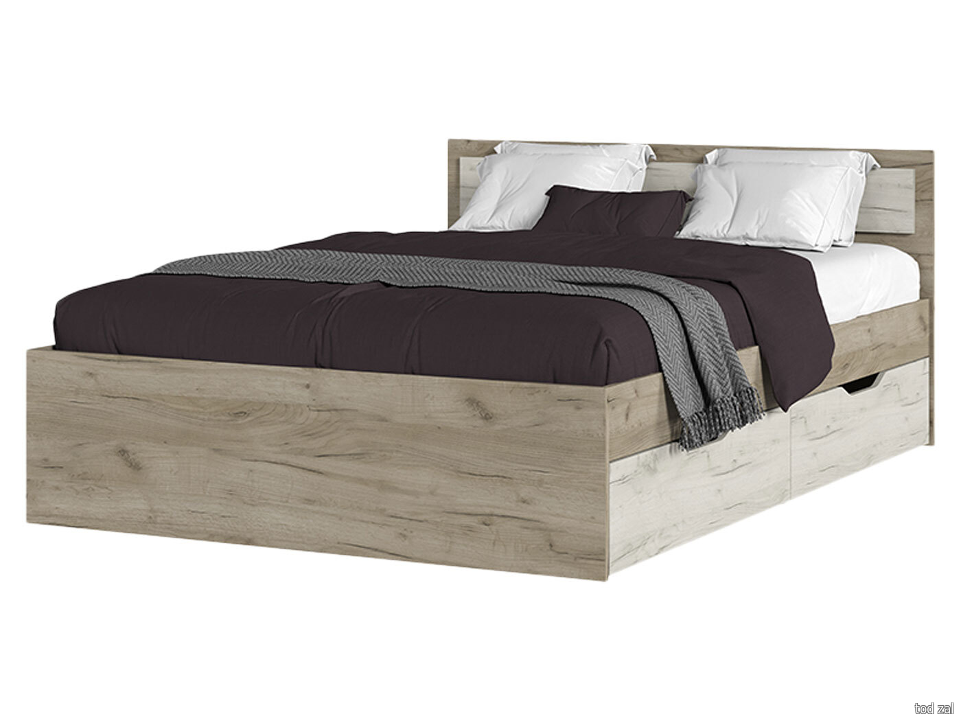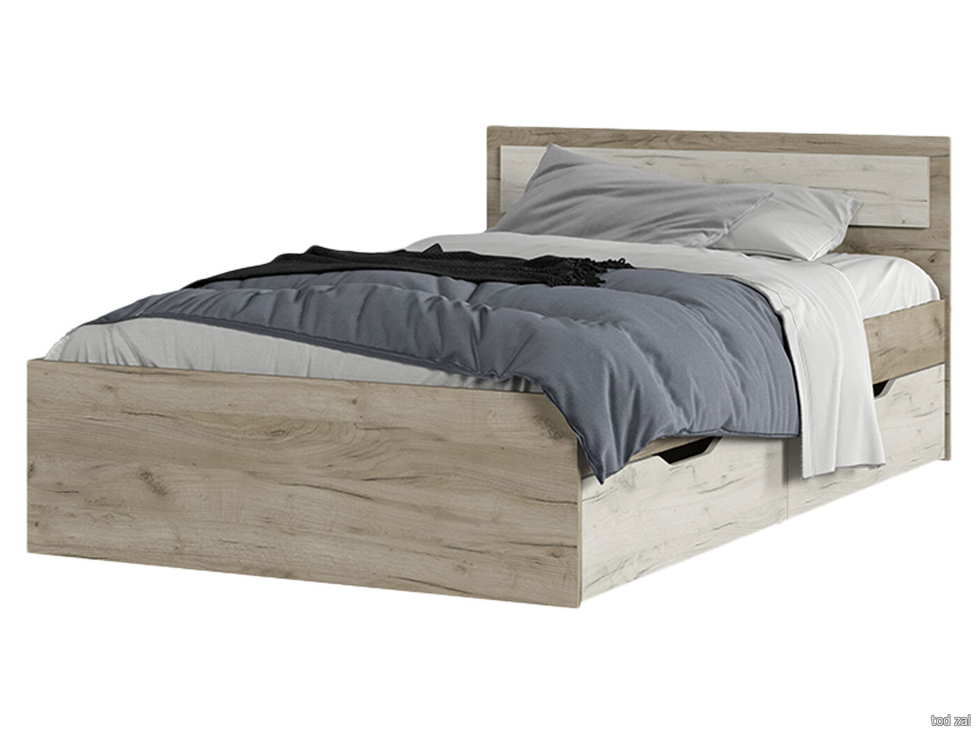 Двуспальная кровать Стендмебель Феста Дуб Крафт серый / Дуб Крафт белый С ящиками 90х200 см