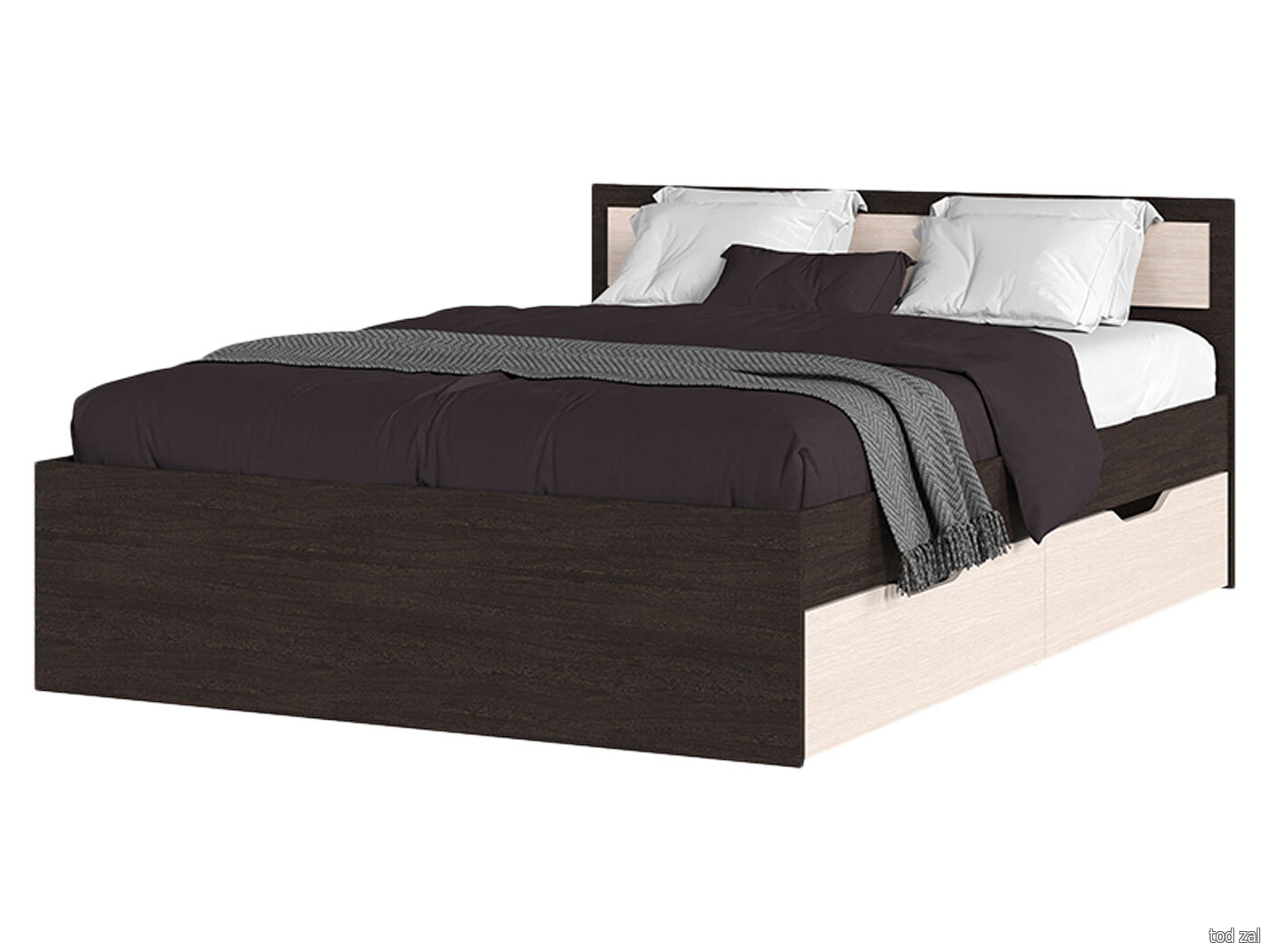 Двуспальная кровать Стендмебель Феста Венге / Дуб Белфорт С ящиками 160х200 см