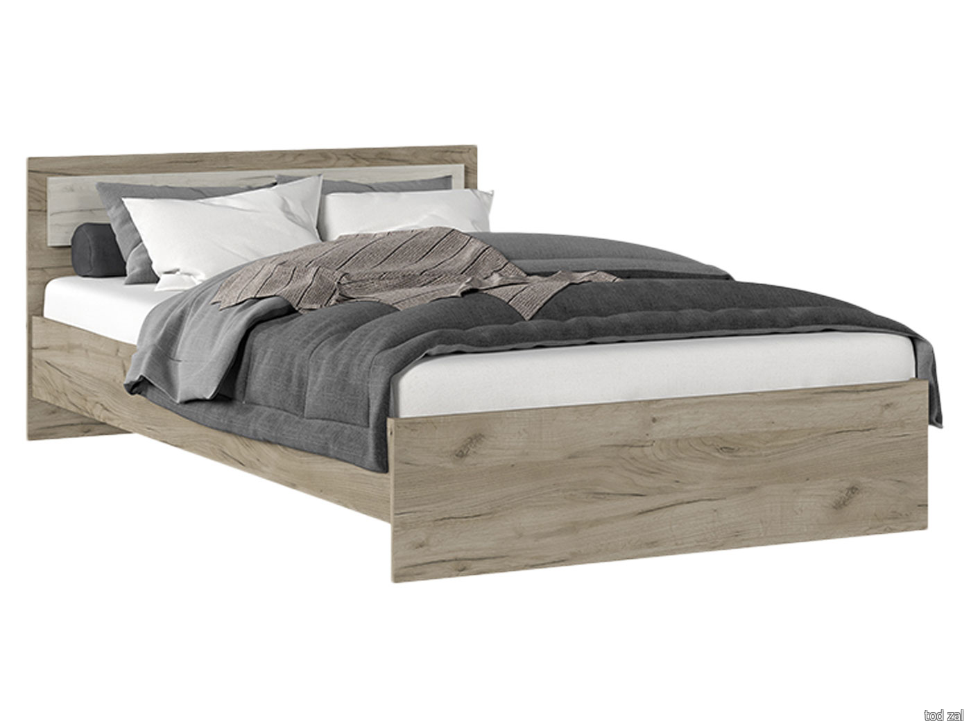 Двуспальная кровать Стендмебель Феста Дуб Крафт серый / Дуб Крафт белый Без ящиков 120х200 см