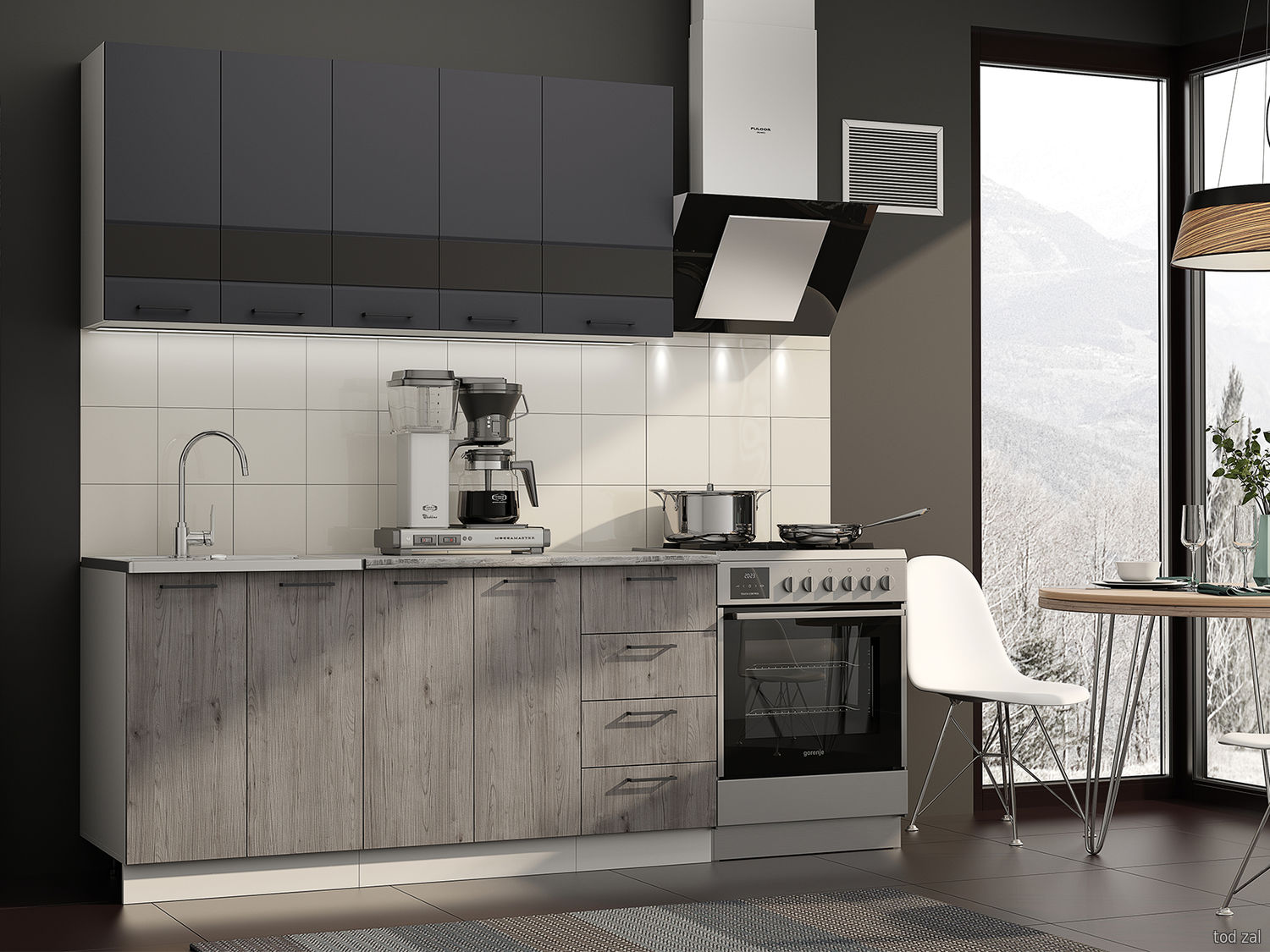 Кухонный гарнитур Эра Астра 160 см Белый / Графит софт / Дуб Галиано / Стекло / столешница Калаката Белый / Графит софт / Дуб Галиано / Стекло / столешница Калаката