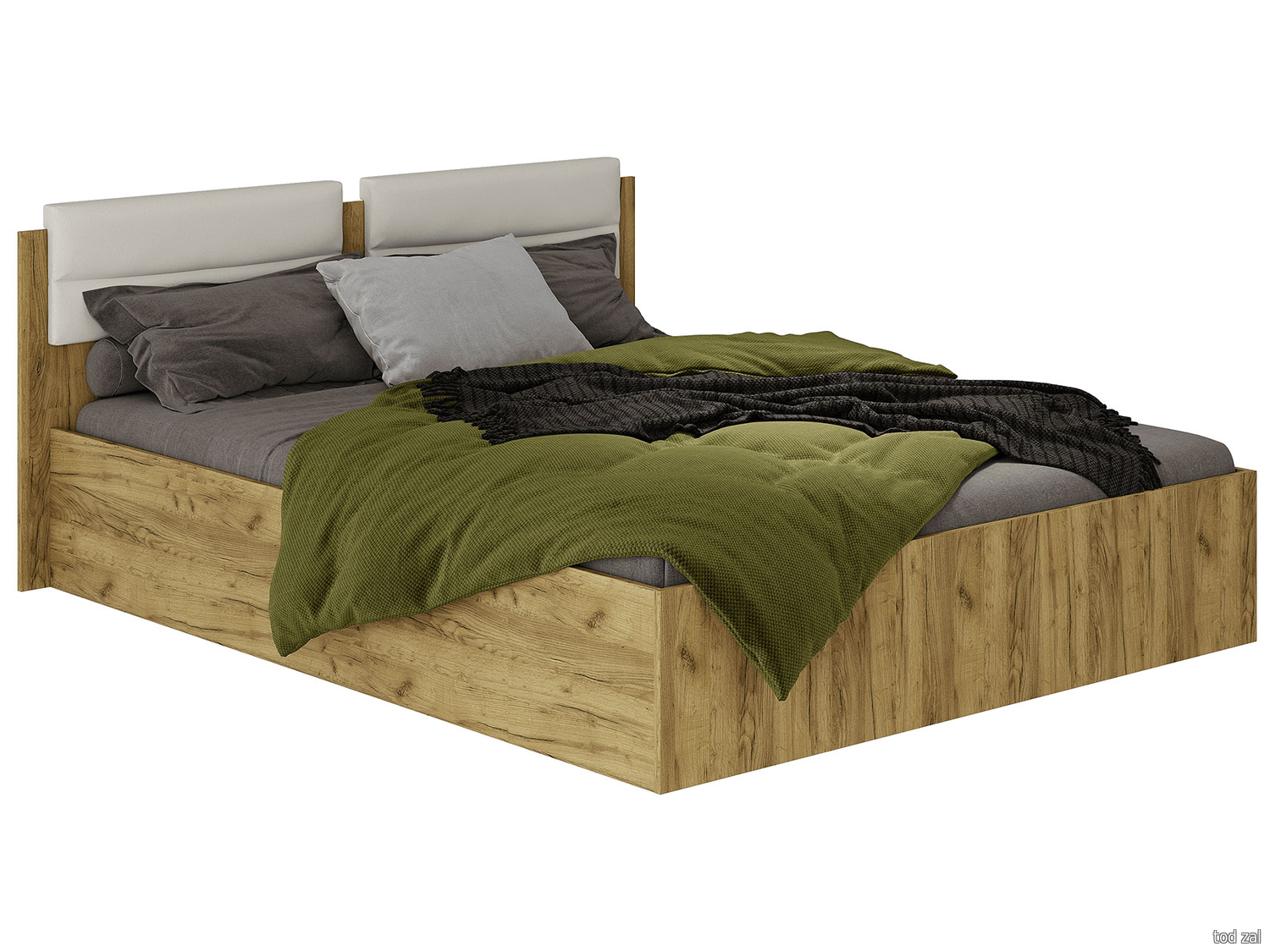 Двуспальная кровать Мебелони Дикс Дуб Крафт / Белый / Белый, экокожа С реечным основанием 160х200 см
