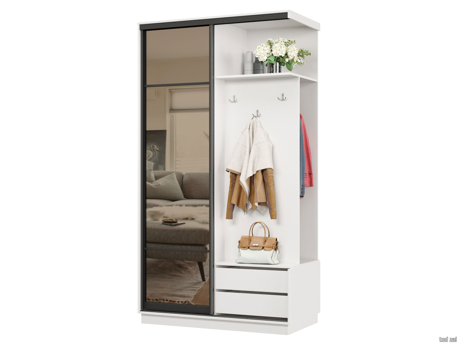 Распашной шкаф todzal Тоскана Серый кашемир / Акация / Зеркало Серый кашемир / Акация / Зеркало