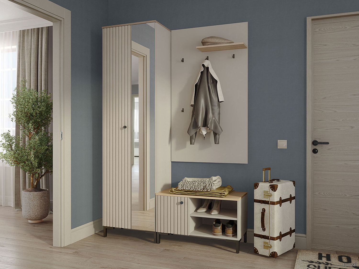 Прихожая todzal Бриана Серый кашемир / Дуб Барокко / Зеркало С зеркалом