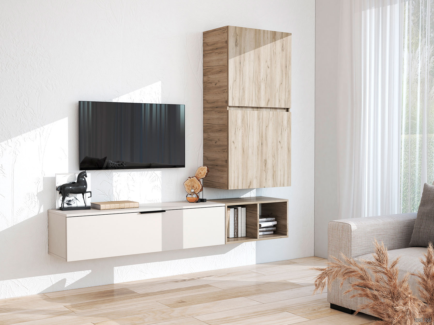 Распашной шкаф МК СТИЛЬ Бохо Дуб Крафт серый / Кашемир Дуб Крафт серый / Кашемир