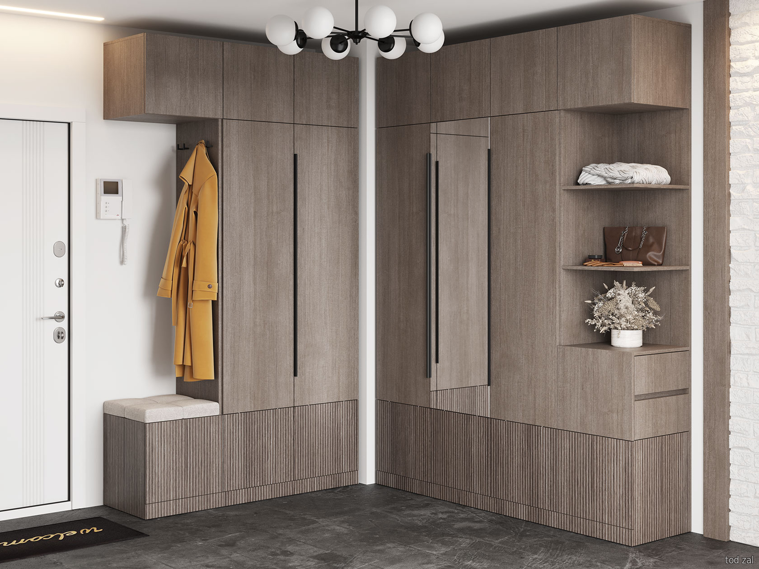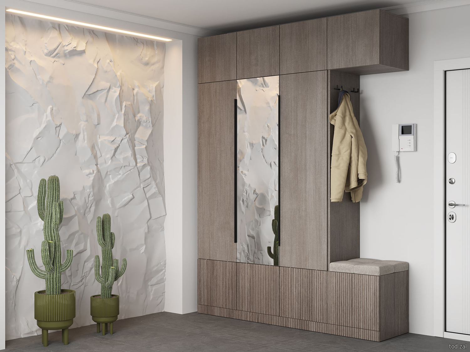 Прихожая МК СТИЛЬ Кантри с антресолями и зеркалом Тира / Кадена Вуд / Бежевый, велюр Тира / Кадена Вуд / Бежевый, велюр