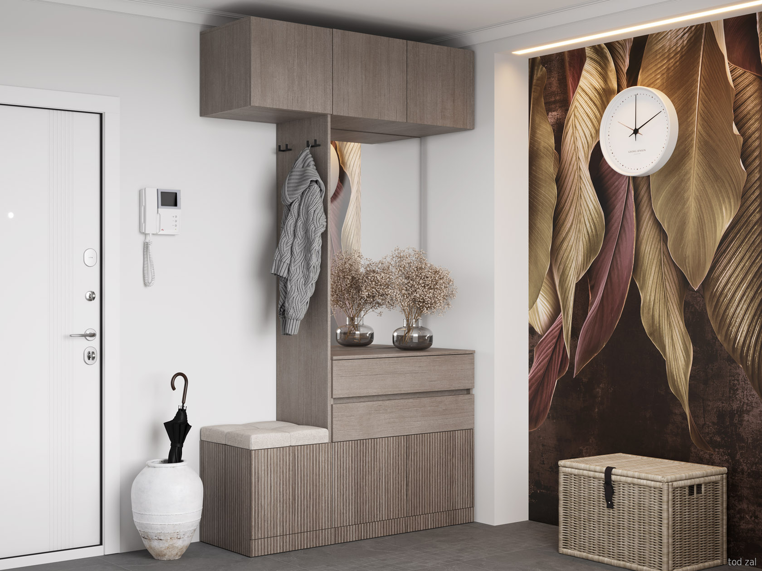 Прихожая МК СТИЛЬ Кантри 2 ящика Тира / Кадена Вуд / Бежевый, велюр Тира / Кадена Вуд / Бежевый, велюр
