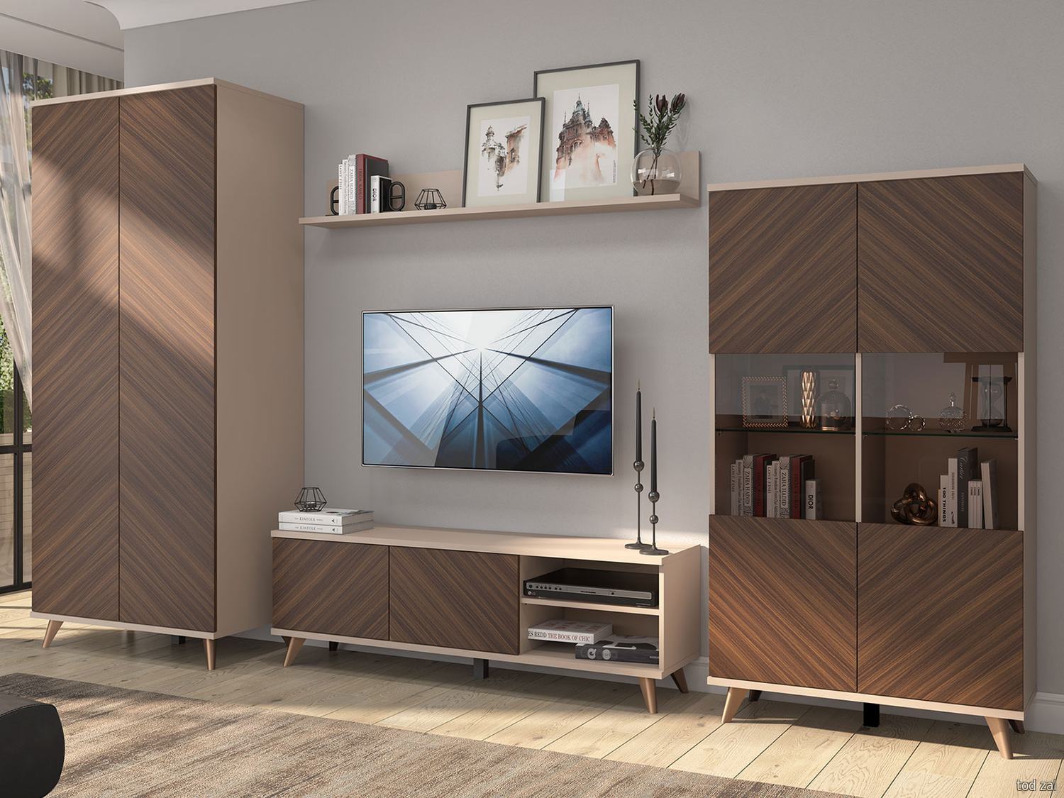 Шкаф-витрина todzal Хармони Бежевый / Древесный Бежевый / Древесный