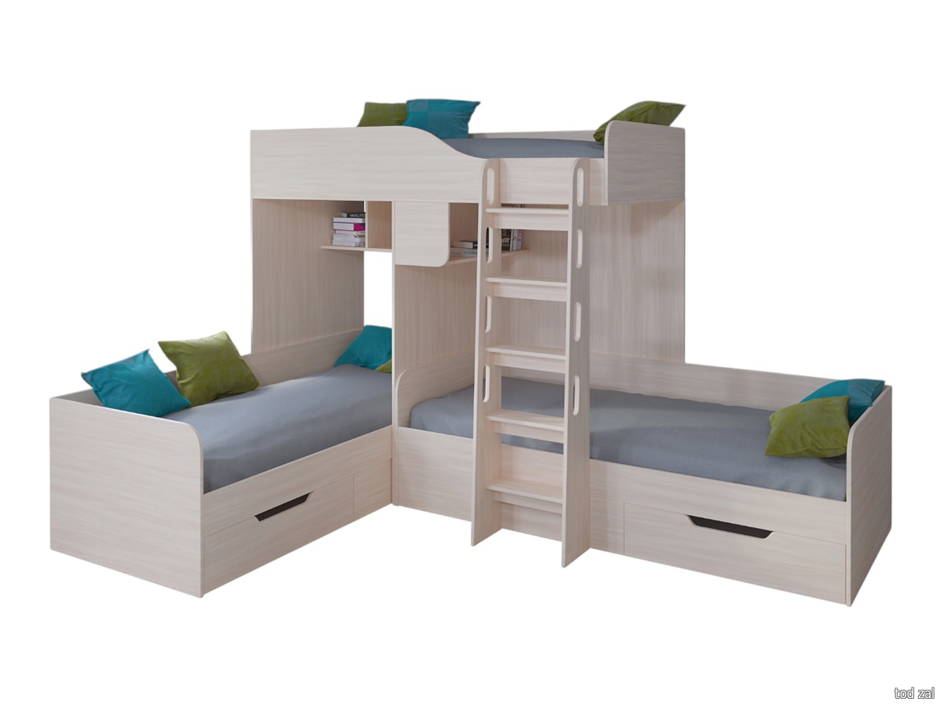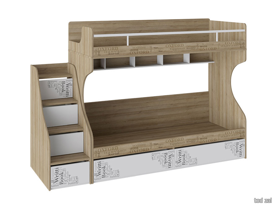 Двухъярусная кровать ТриЯ Оксфорд Дуб Ривьера с рисунком / Белый с рисунком Дуб Ривьера с рисунком / Белый с рисунком