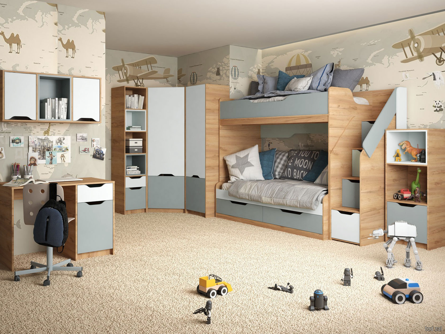 Комплект детской мебели МК СТИЛЬ Лео Дуб Крафт золотой / Сумеречный голубой / Пастельный зеленый Дуб Крафт золотой / Сумеречный голубой / Пастельный зеленый