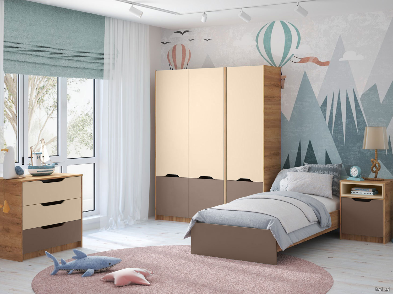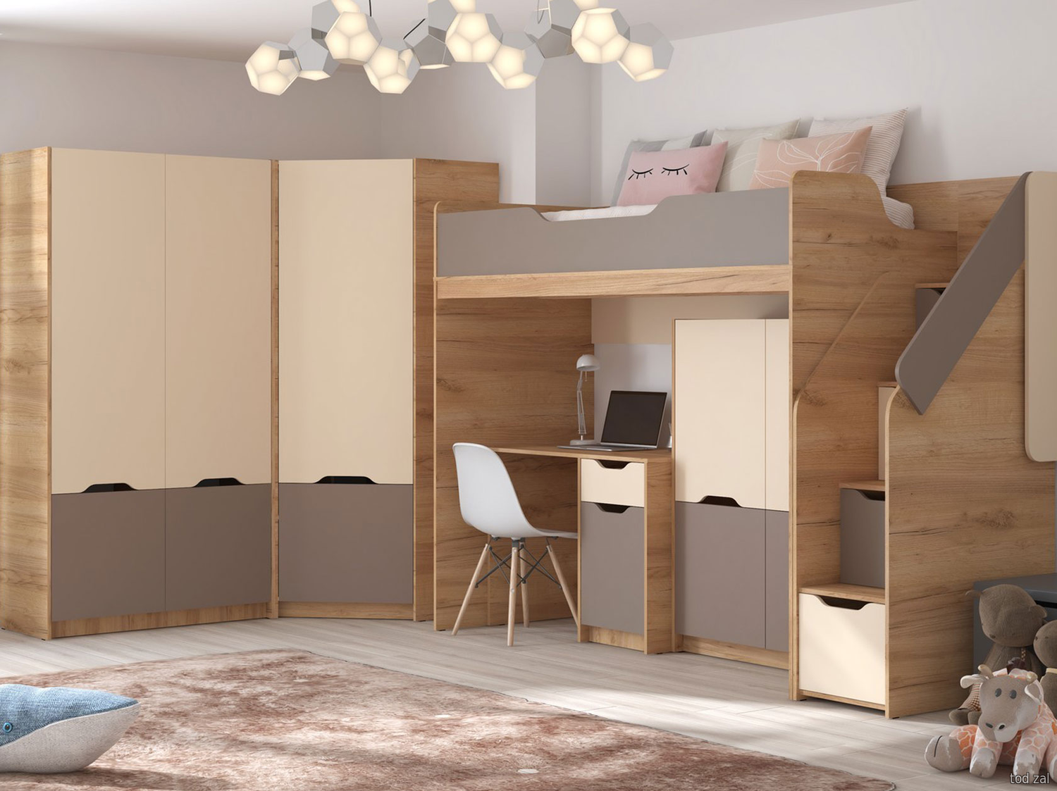 Комплект детской мебели МК СТИЛЬ Лео Дуб Крафт золотой / Миндаль / Глиняный серый Дуб Крафт золотой / Миндаль / Глиняный серый
