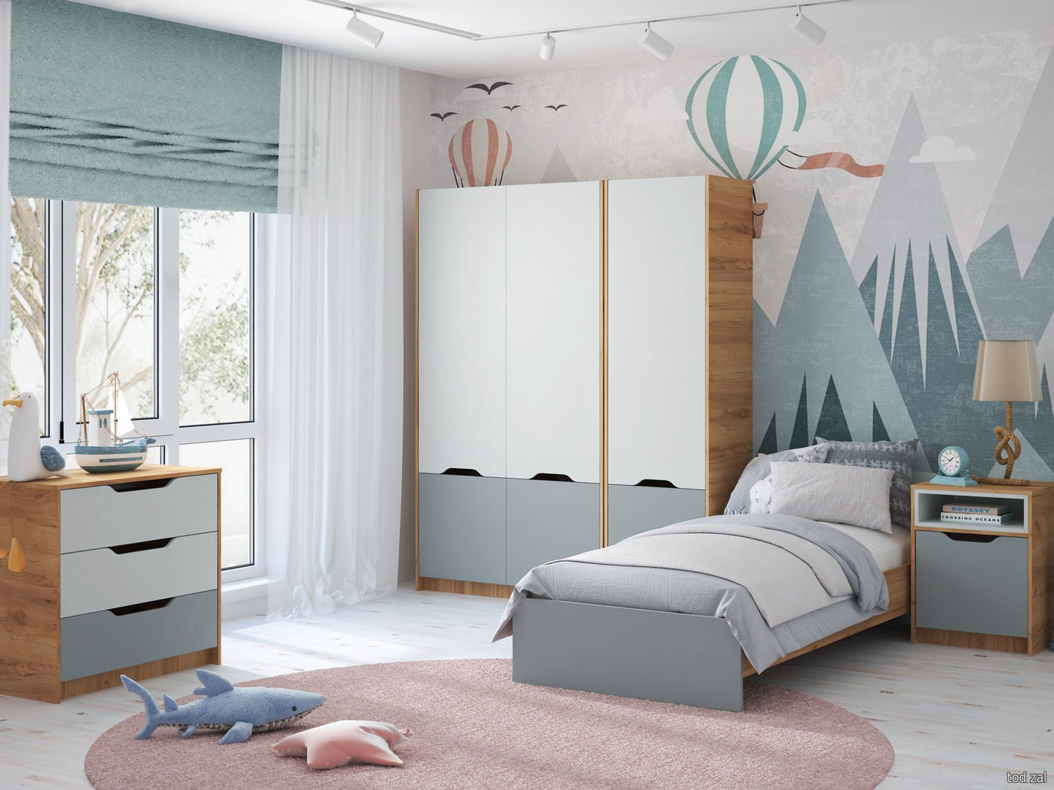 Комплект детской мебели МК СТИЛЬ Джерси Шиншилла серый / Скай матовый / Пастельный зеленый Шиншилла серый / Скай матовый / Пастельный зеленый