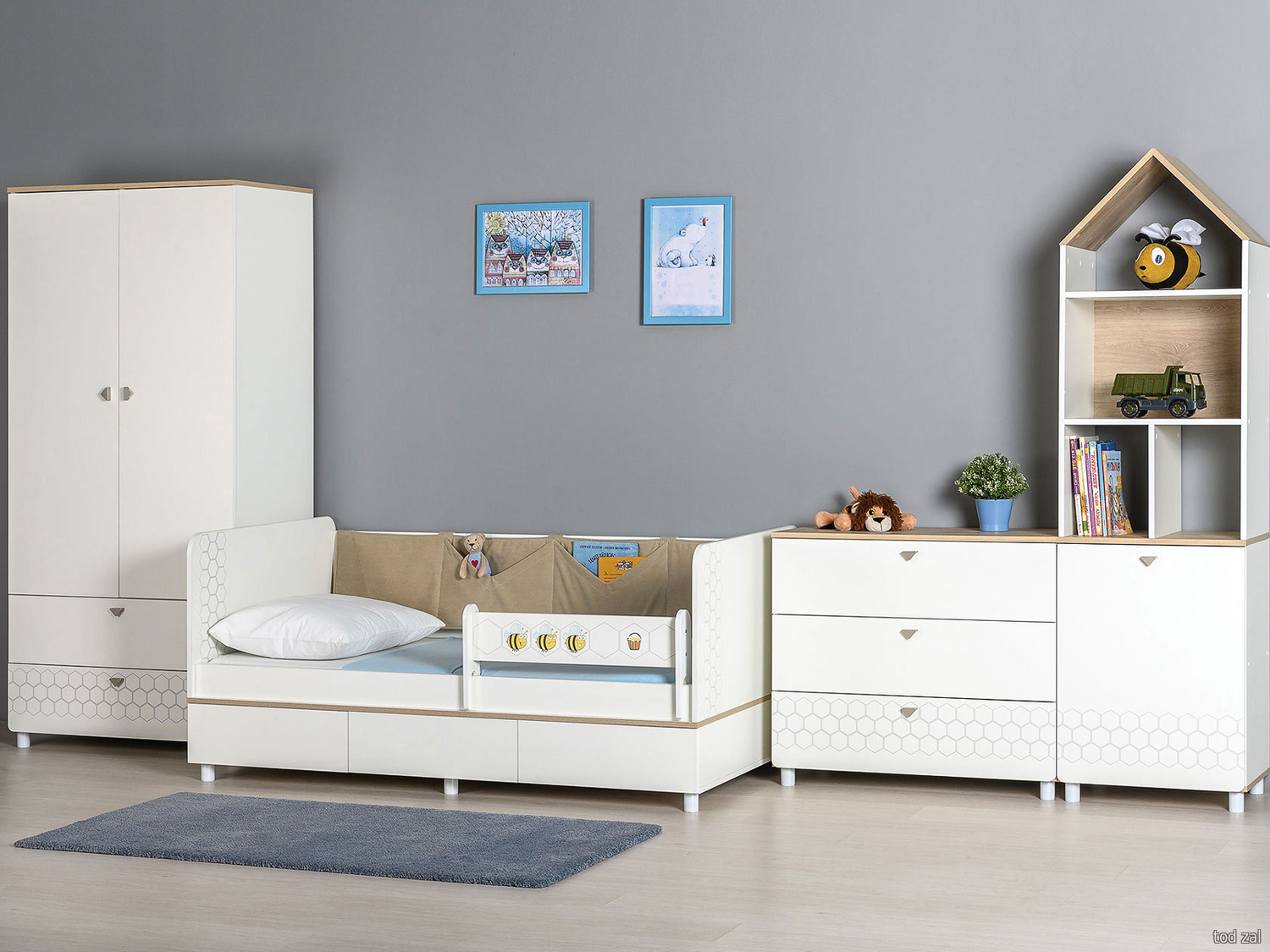 Комплект детской мебели Моби Эйп Белый шагрень / Дуб Белый эксклюзив / Бежевый, велюр Белый шагрень / Дуб Белый эксклюзив / Бежевый, велюр