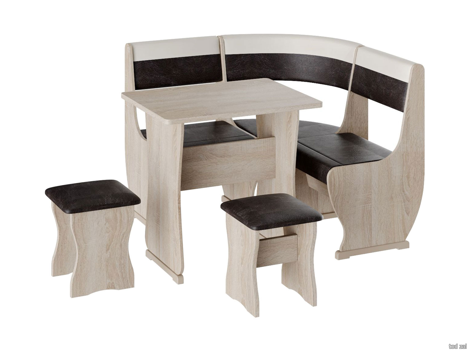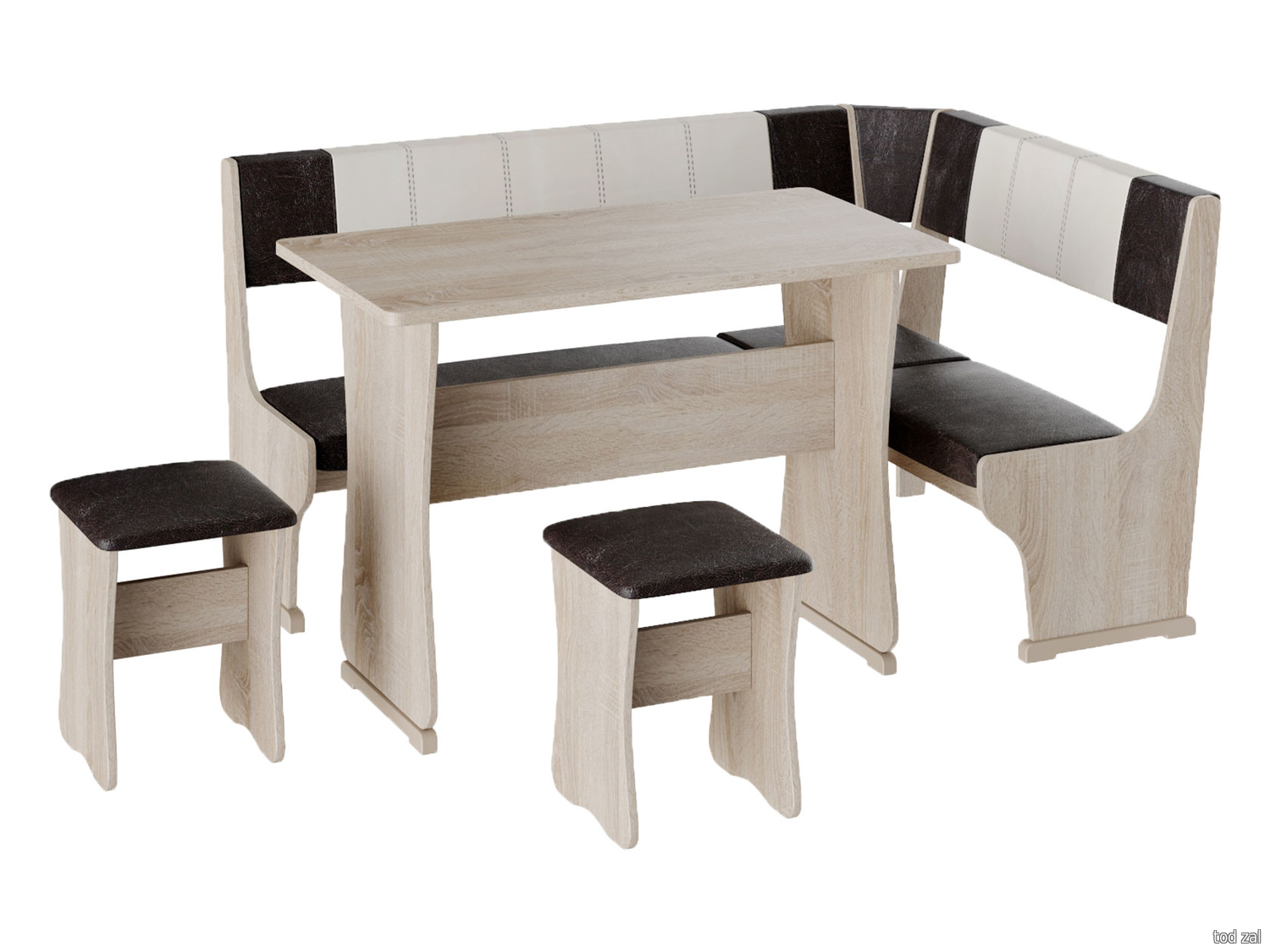 Кухонный уголок Budunov Group Алонзо, Альянс Дуб Сонома / Шоколад, бежевый, экокожа Малый