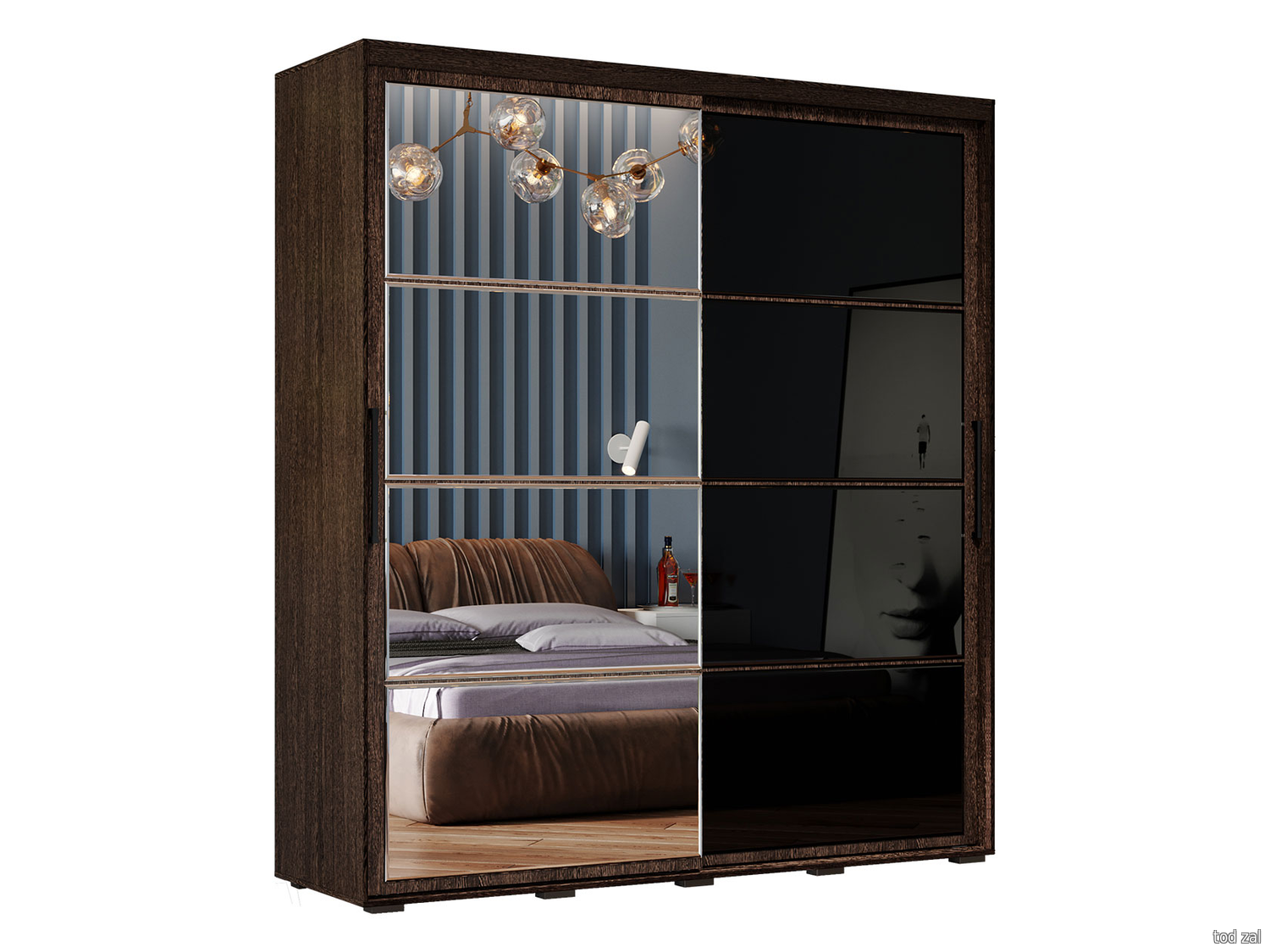 Шкаф-купе Сокол Контур ШР-96.1 с зеркалом Венге / Беленый дуб Венге / Беленый дуб
