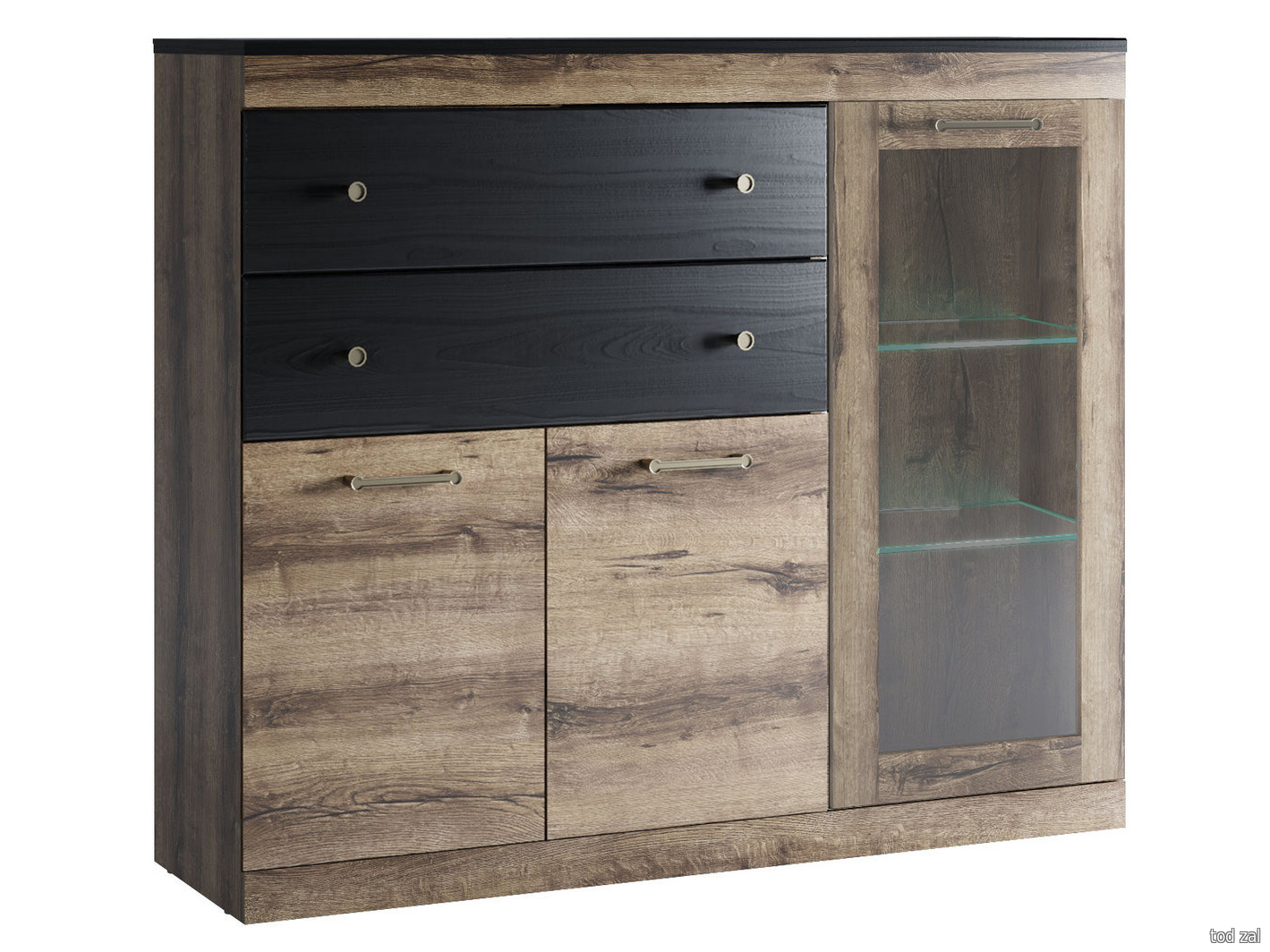 Шкаф-витрина Анрэкс Джагер Дуб монастырский / Черный Дуб монастырский / Черный