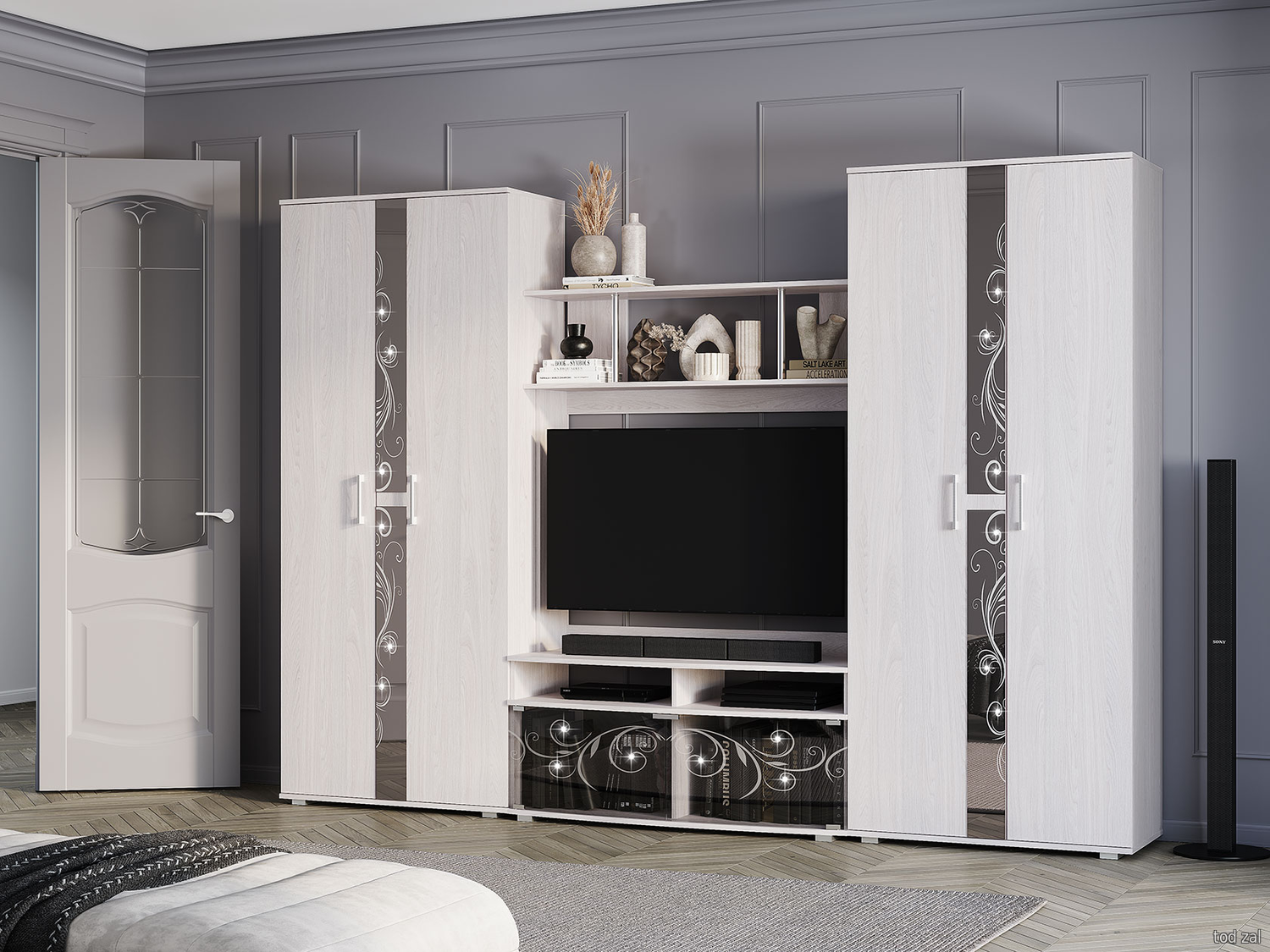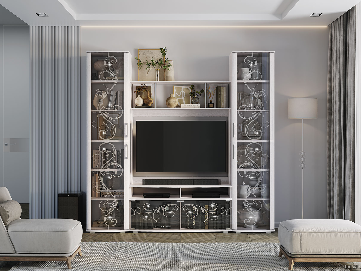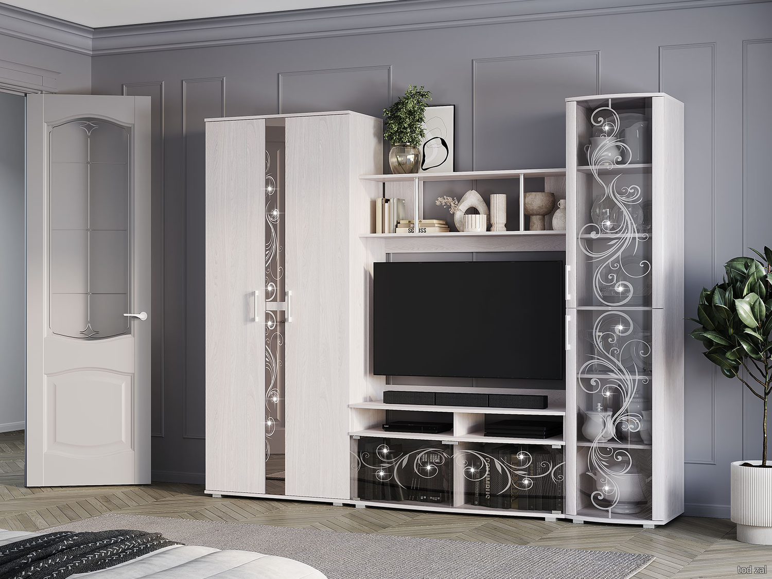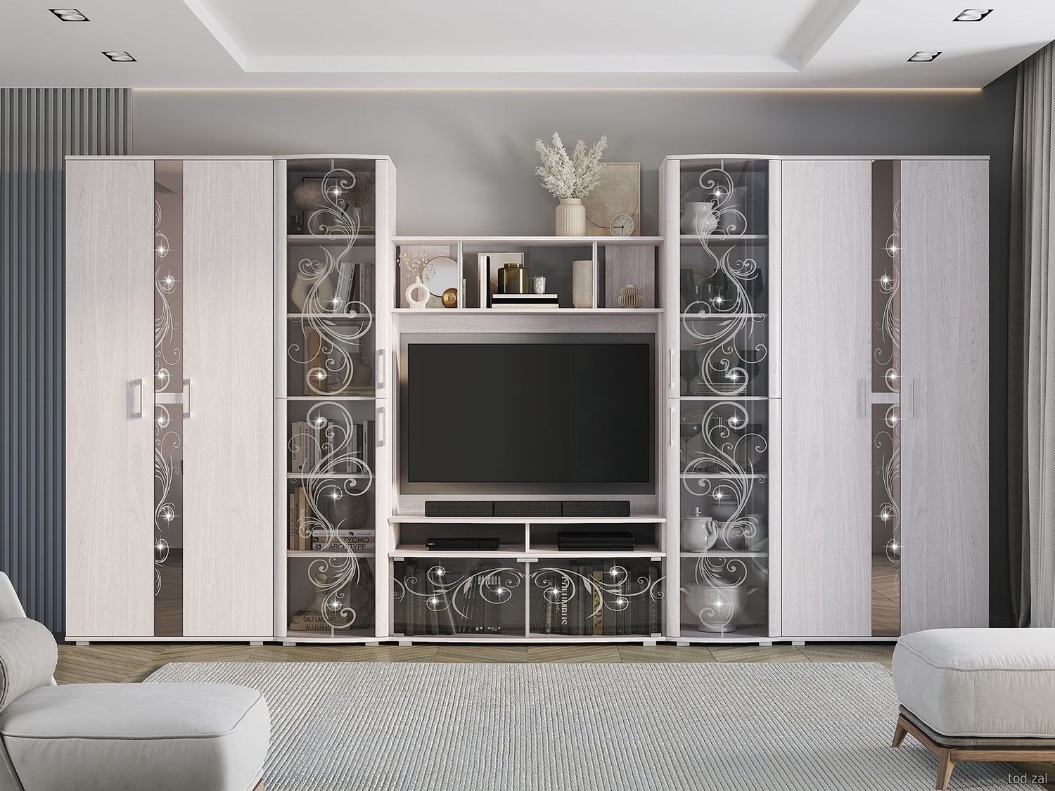 Гостиная Мебелони Флоренция шкафы и витрины Ясень белый Ясень белый