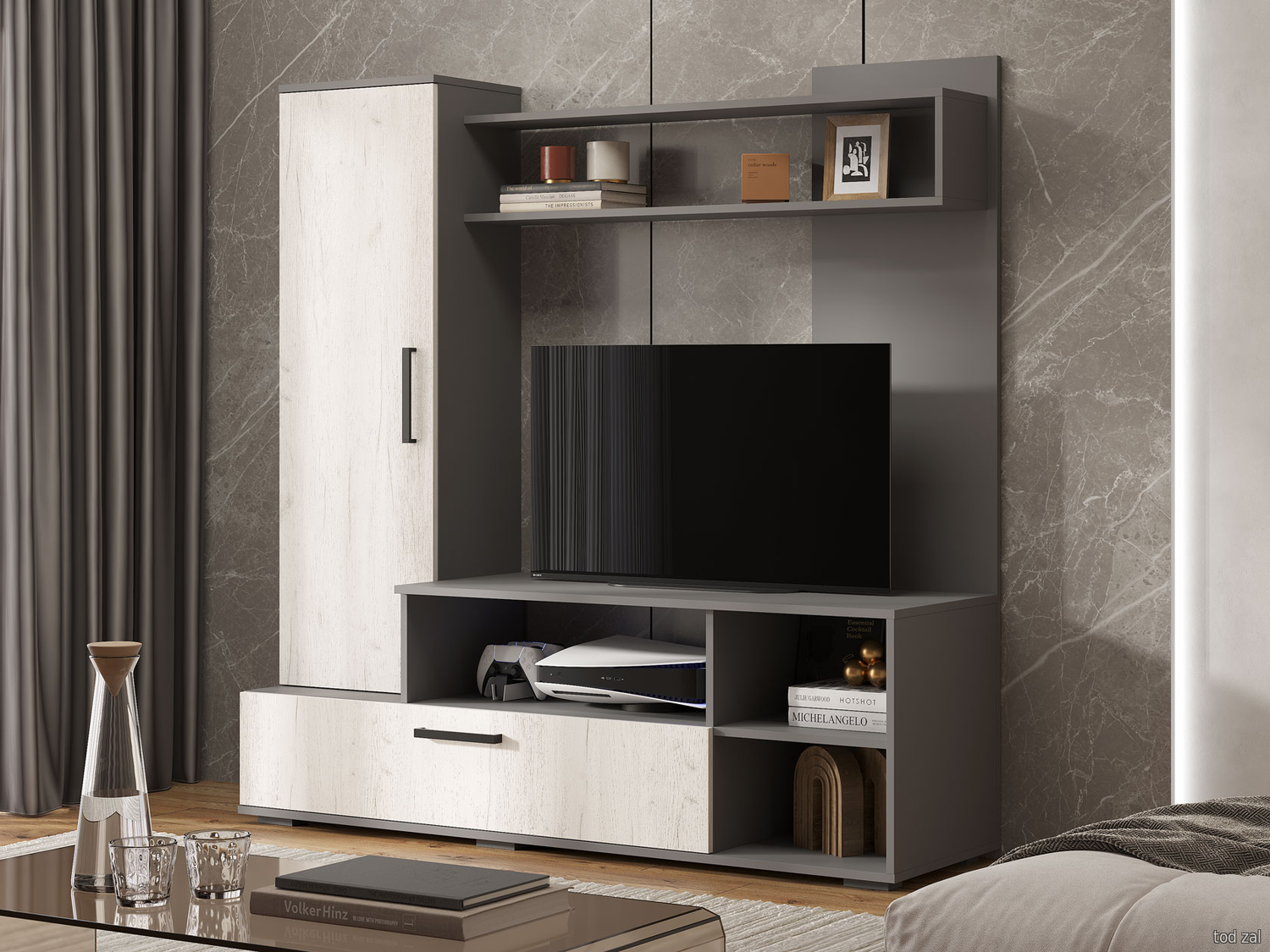 Гостиная BTS Евро Графит / Дуб Крафт белый Графит / Дуб Крафт белый