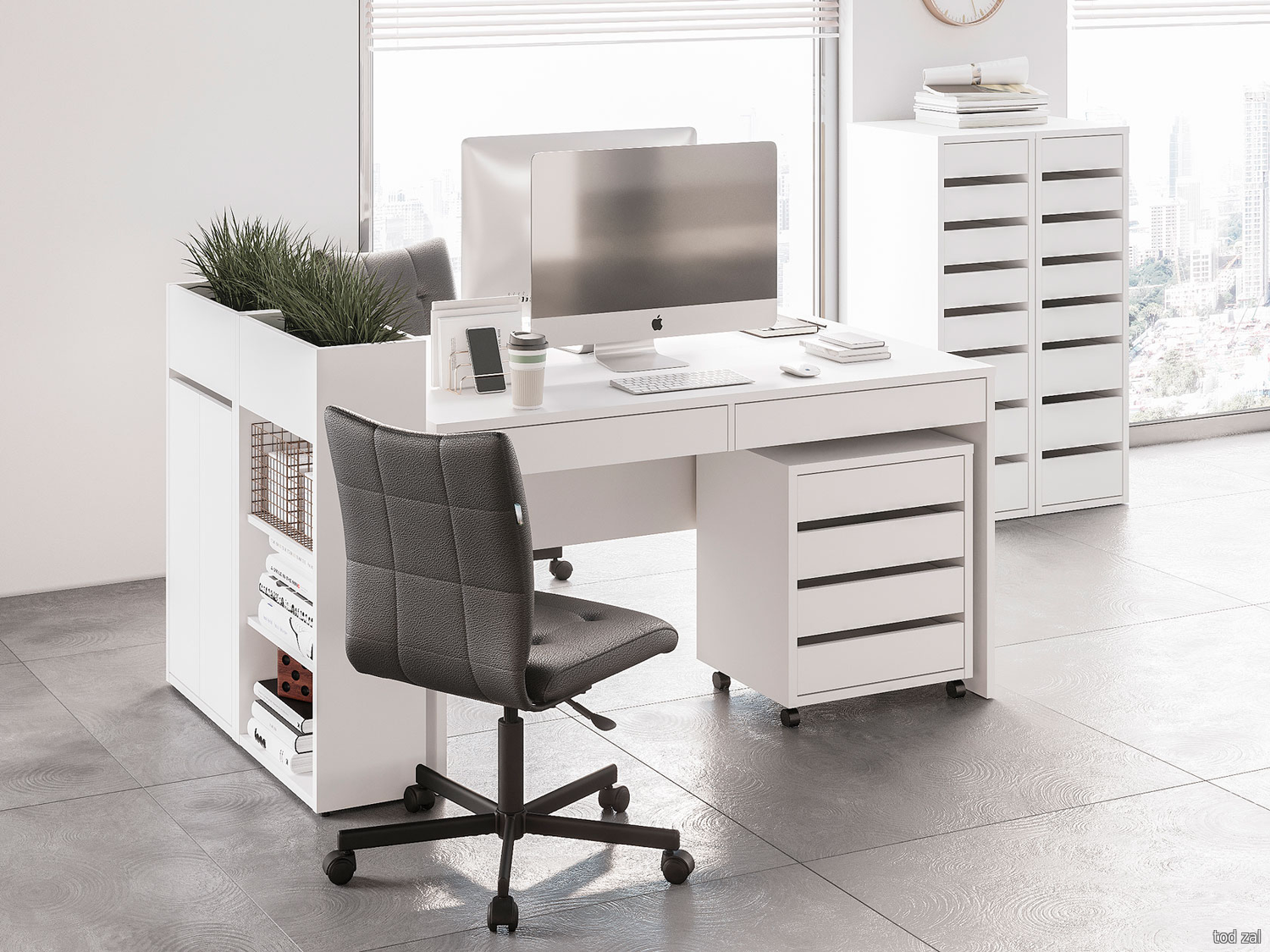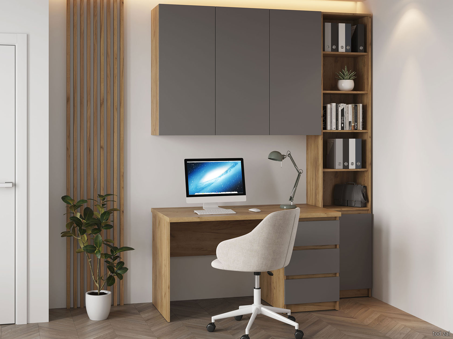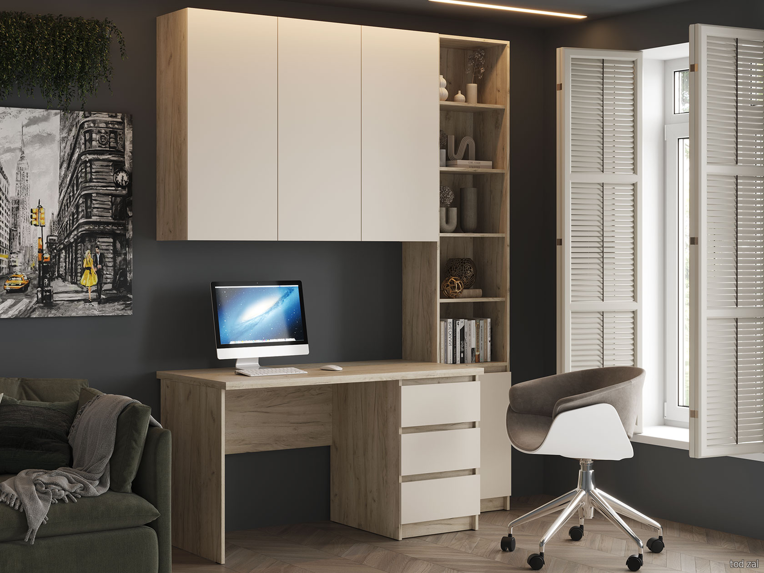 Комплект офисной мебели МК СТИЛЬ Бостон (стеллаж+стол+шкаф) Дуб Крафт золотой / Серый шифер Дуб Крафт золотой / Серый шифер