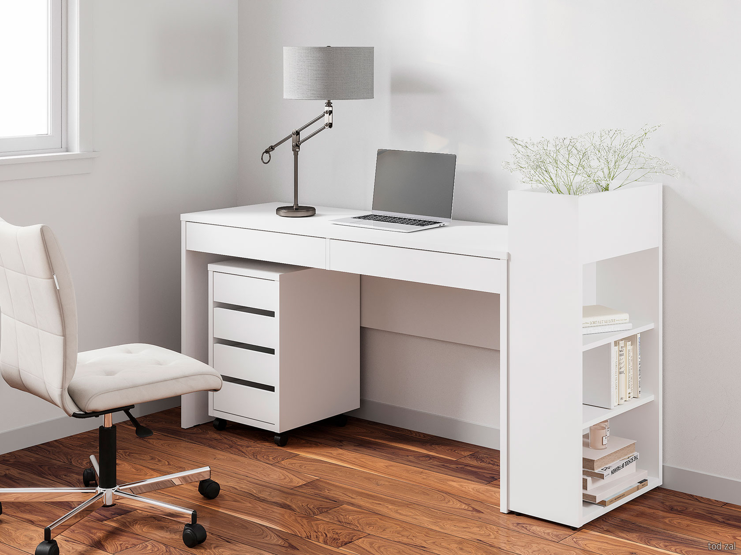 Комплект офисной мебели МК СТИЛЬ Бостон (стеллаж+стол+шкаф) Дуб Крафт золотой / Белый глянец Дуб Крафт золотой / Белый глянец