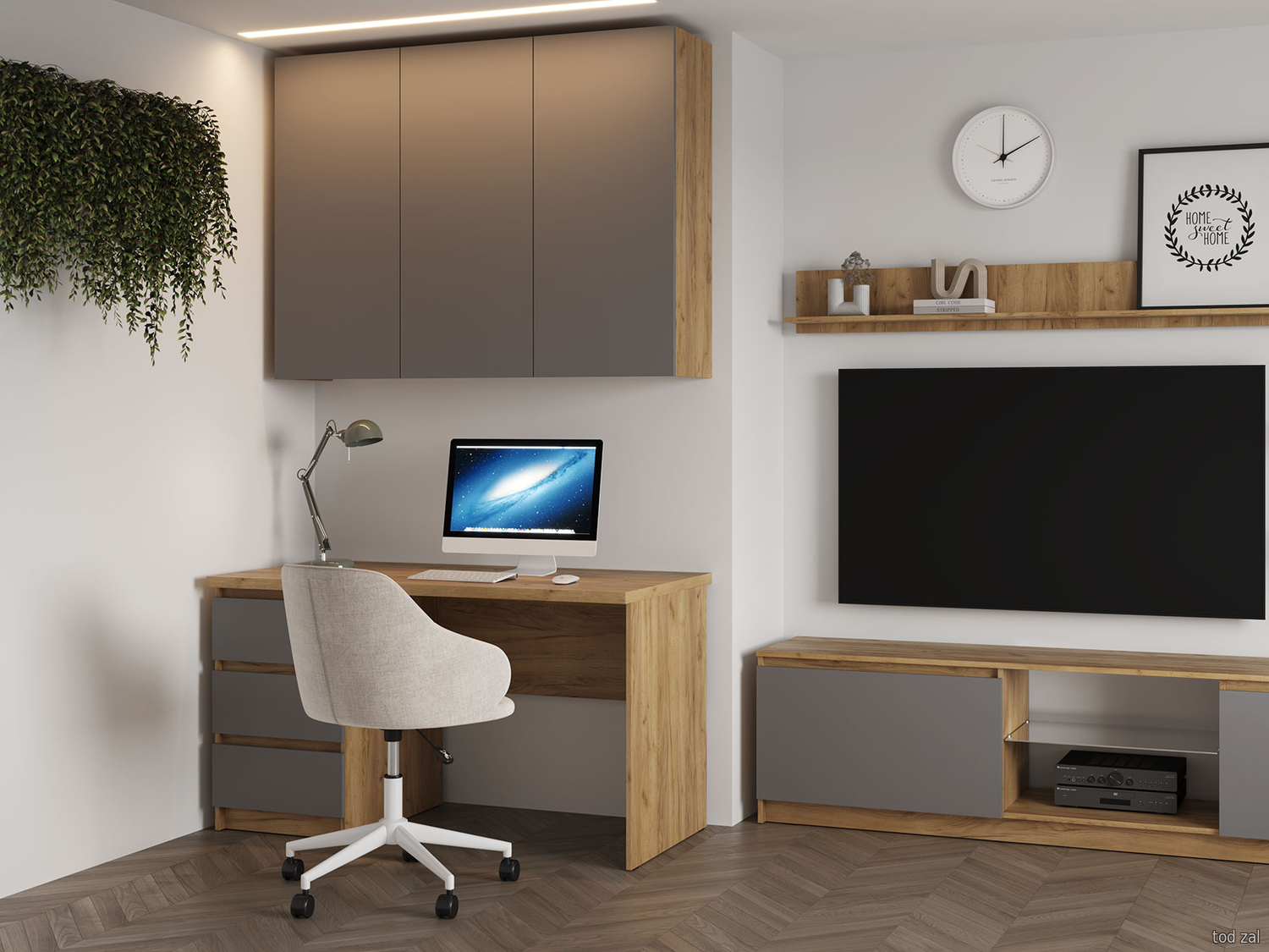 Комплект офисной мебели МК СТИЛЬ Бостон (стол+шкаф) Дуб Крафт золотой / Серый шифер Дуб Крафт золотой / Серый шифер