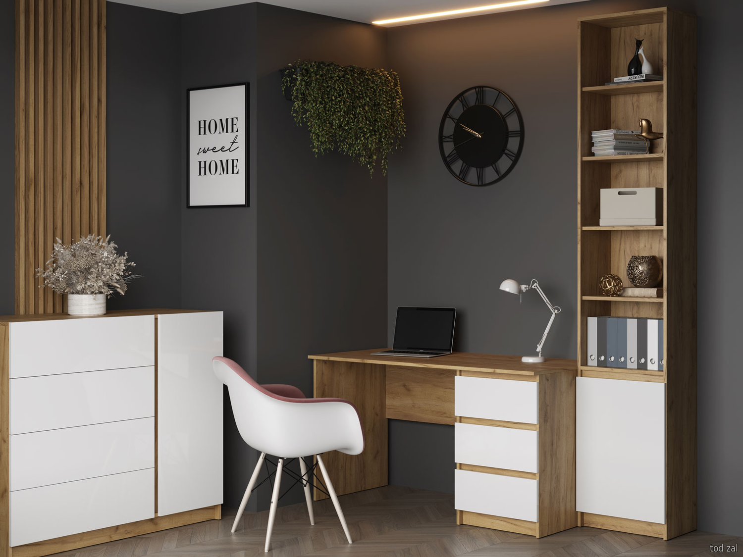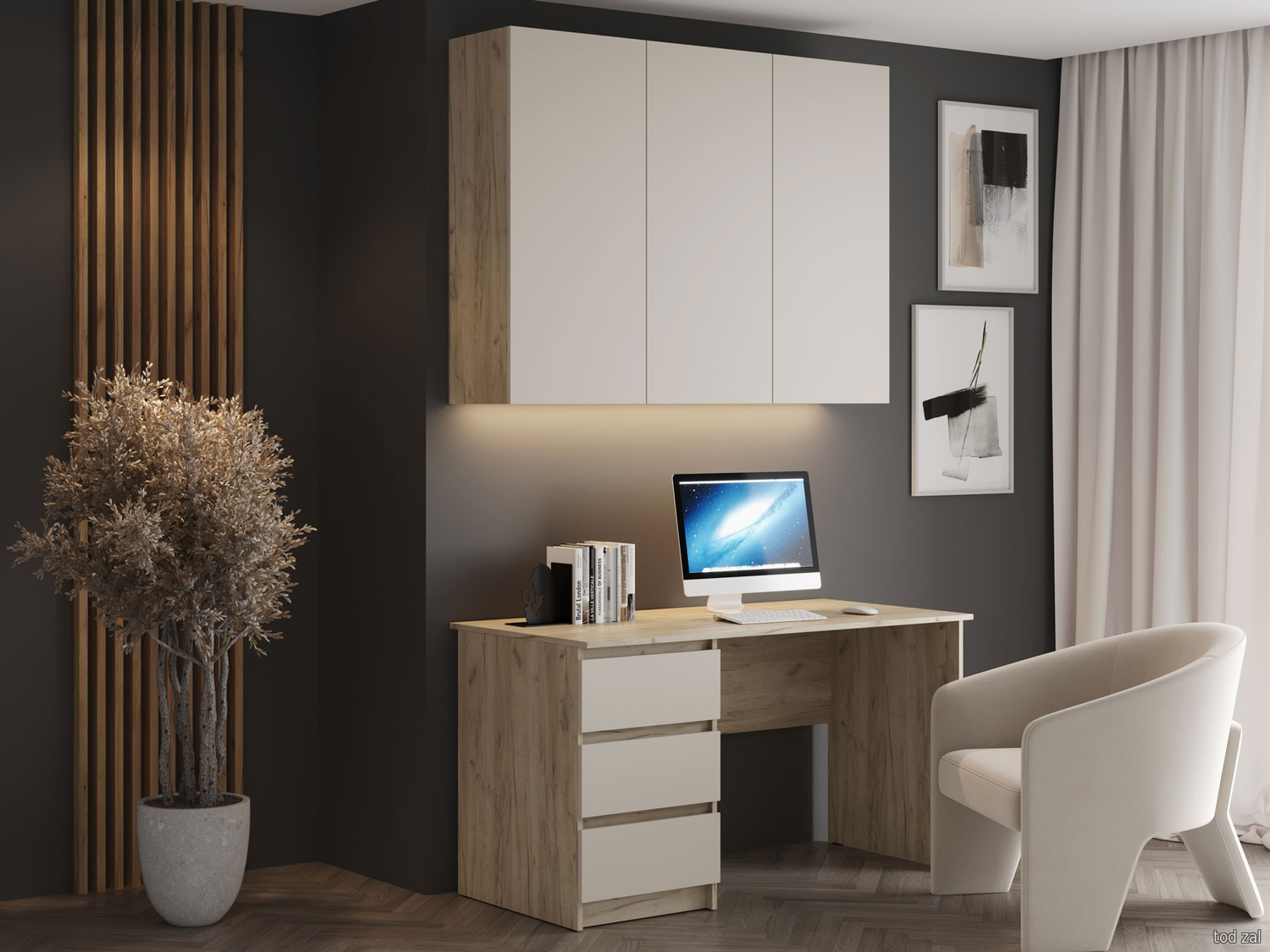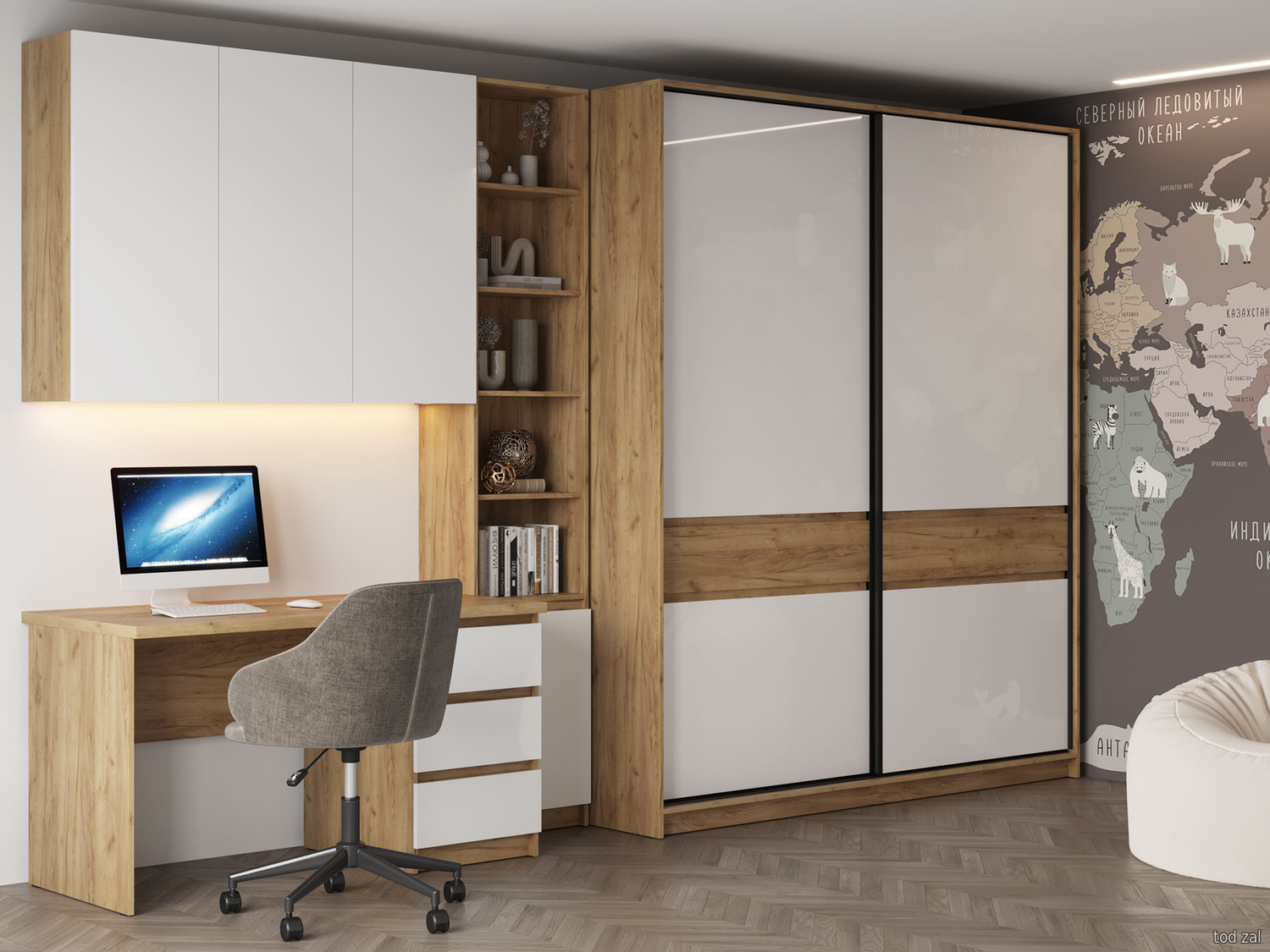 Комплект офисной мебели МК СТИЛЬ Бостон (стол+шкаф) Дуб Крафт золотой / Белый глянец Дуб Крафт золотой / Белый глянец