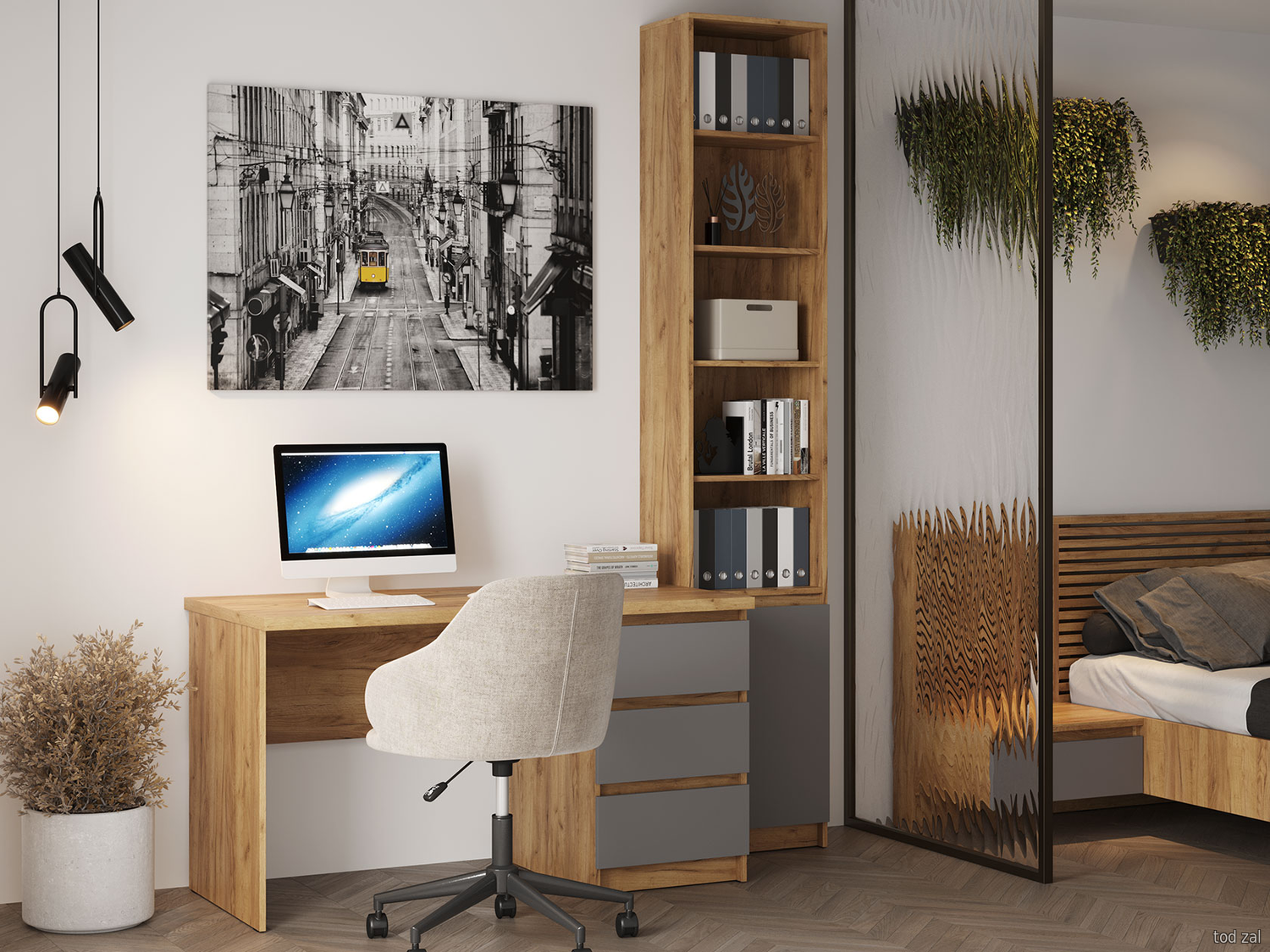 Комплект офисной мебели МК СТИЛЬ Бостон (стеллаж+стол) Дуб Крафт золотой / Серый шифер Дуб Крафт золотой / Серый шифер