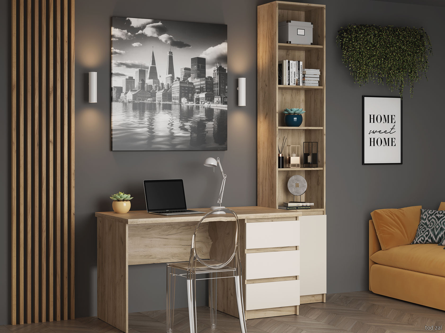 Комплект офисной мебели МК СТИЛЬ Бостон (стеллаж+стол) Дуб Крафт золотой / Белый глянец Дуб Крафт золотой / Белый глянец