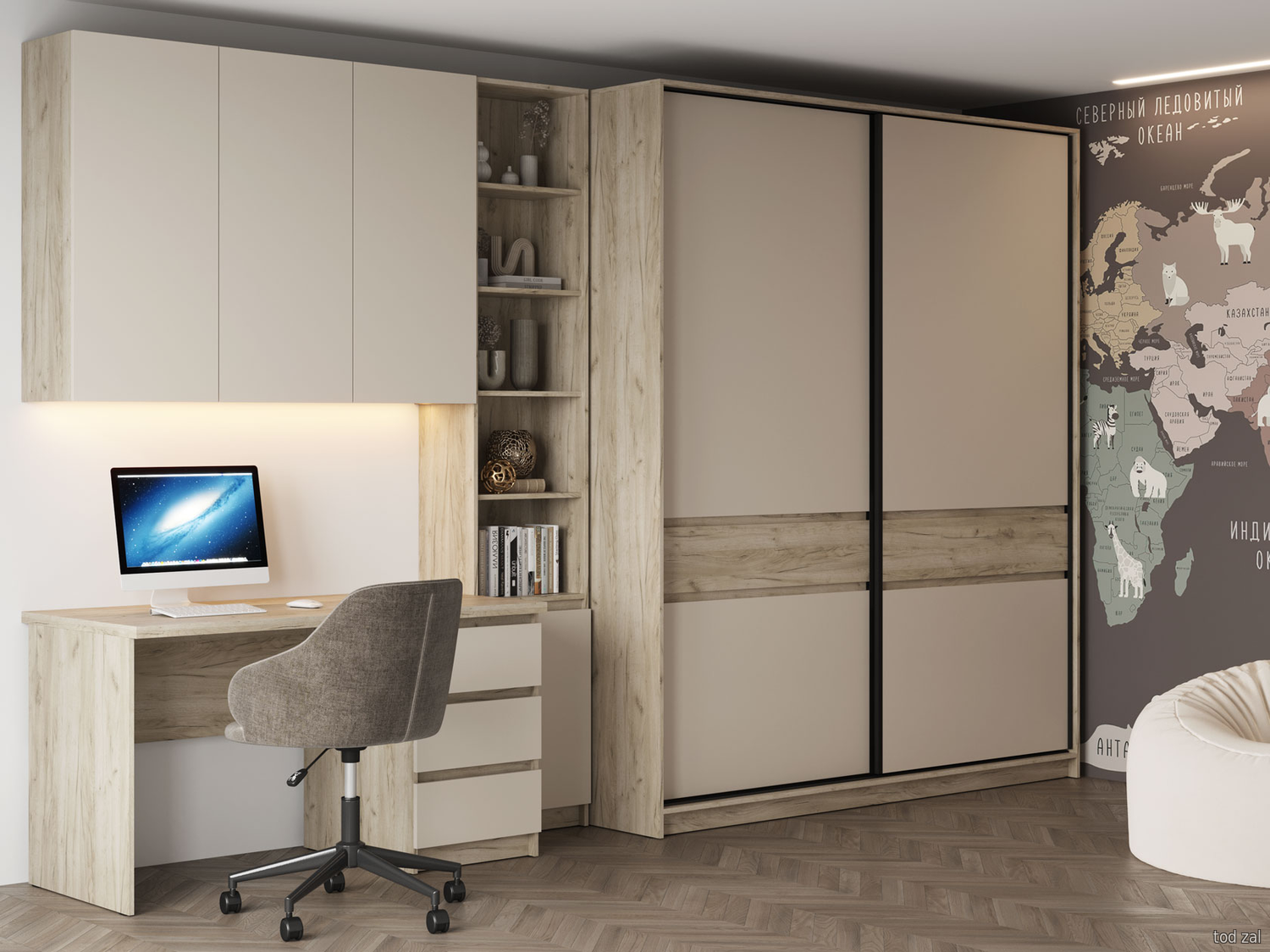 Комплект офисной мебели МК СТИЛЬ Бостон (стол+шкаф) Дуб Крафт серый / Кашемир Дуб Крафт серый / Кашемир